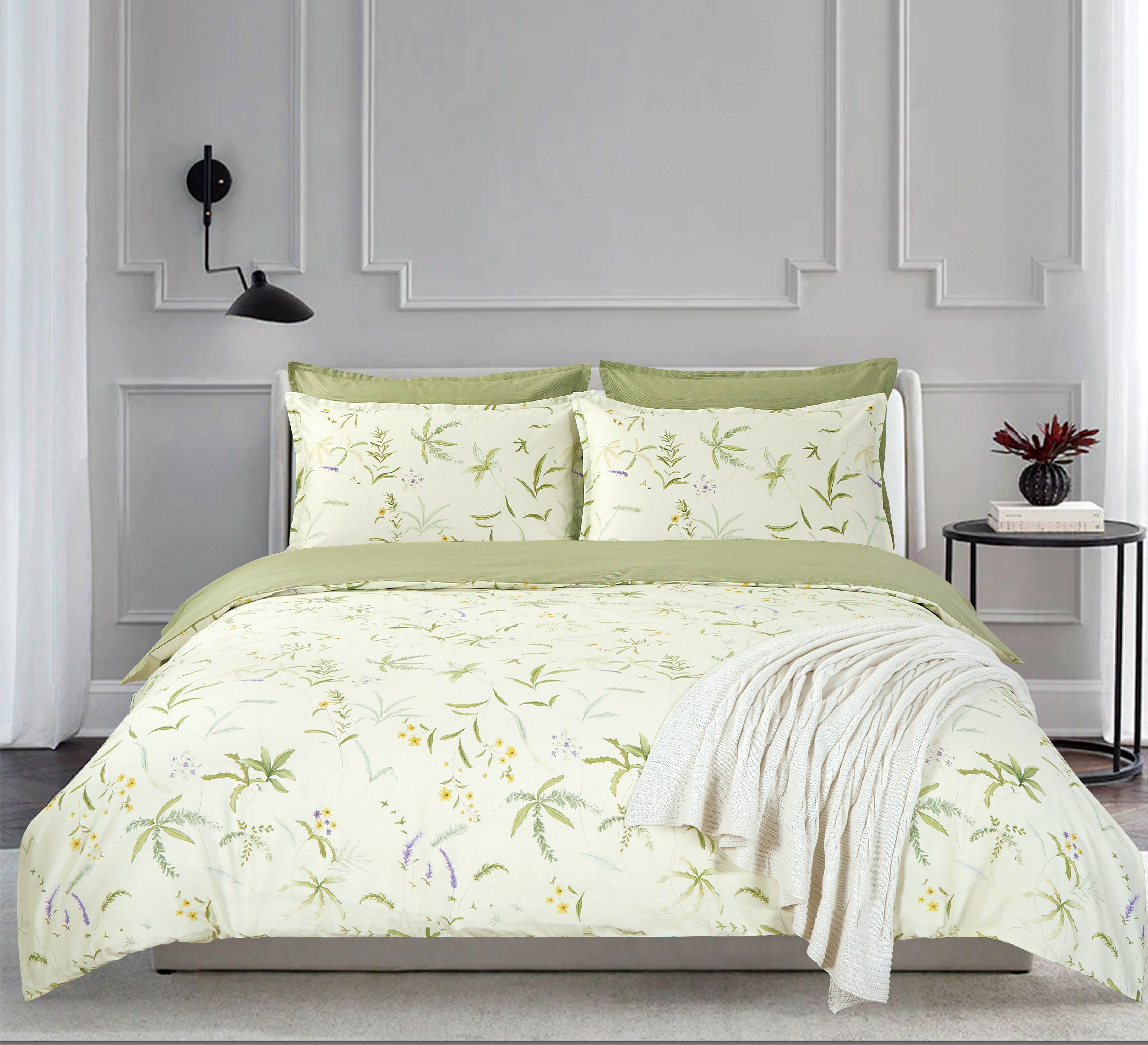 Verdant Bloom:柔和的水彩印刷風(fēng)格,融合了多種綠色系色調的鮮艷花卉,正反面顏色強烈碰撞,展現出色彩的交織與層次,給臥室帶來(lái)了清新而生動(dòng)的氣息。